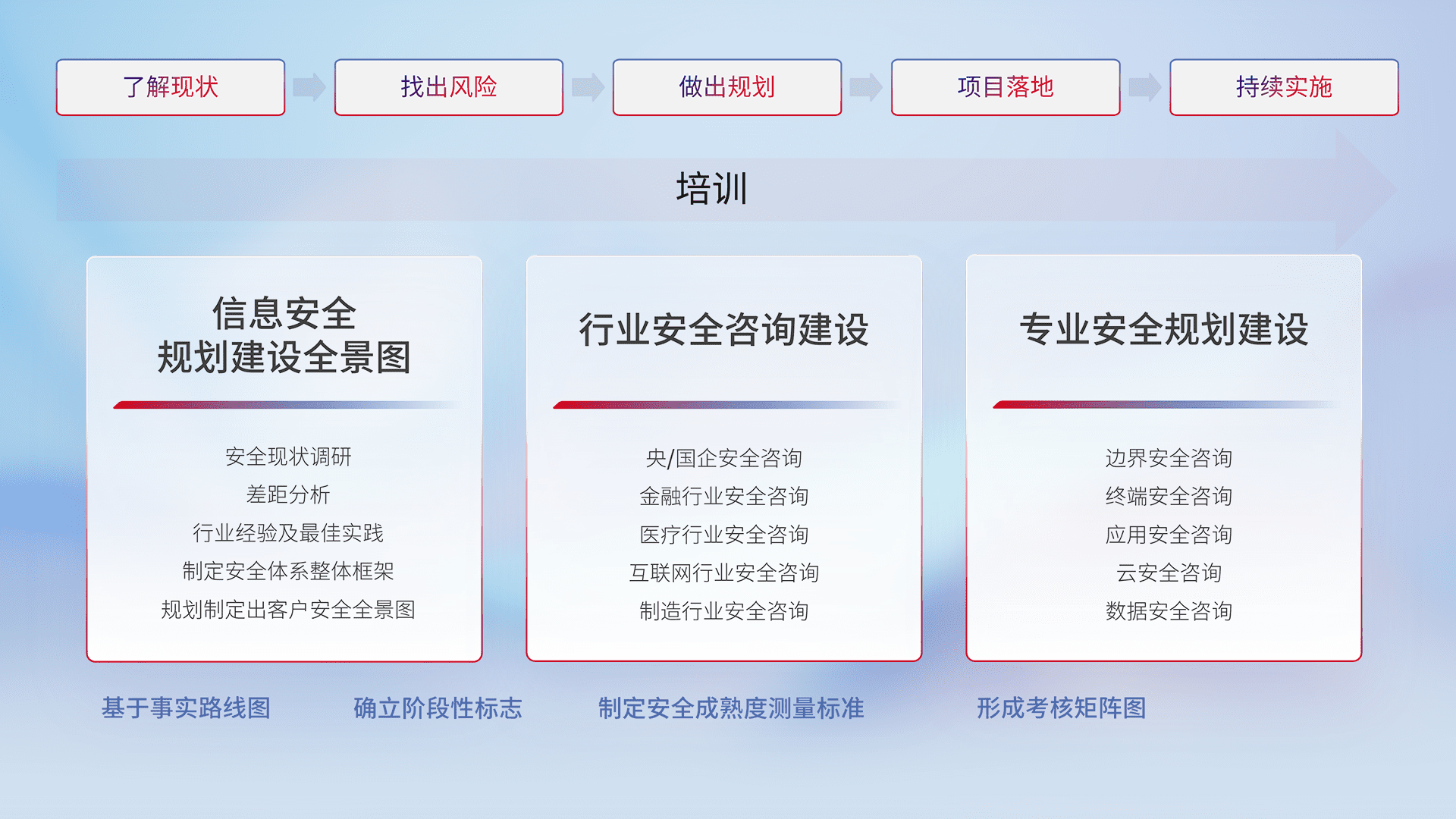 通过专业的法律咨询解读、、、合规架构体现、、差异化解决方案、、、、测试实施支持等服务,,,为客户量身打造等保合规体系。。。