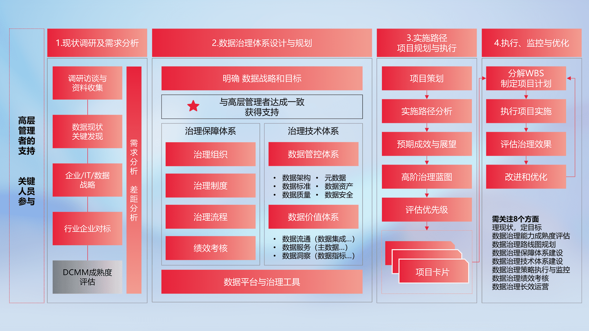 制定并执行统一的数据标准,,,,规范数据定义和格式,,消除冗余和不一致性,,,,实现跨部门和跨系统的数据一致性,,为企业提供标准化的数据基础。。